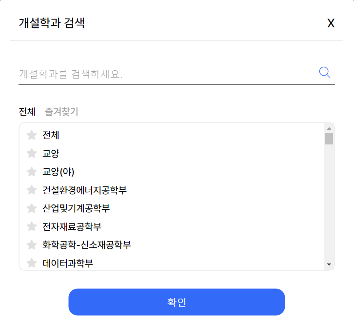 웹 SUWIKI 배포 전부터 성능상 불만이 있는 부분이 있었는데 아래의 학과 즐겨찾기 모달이었다.