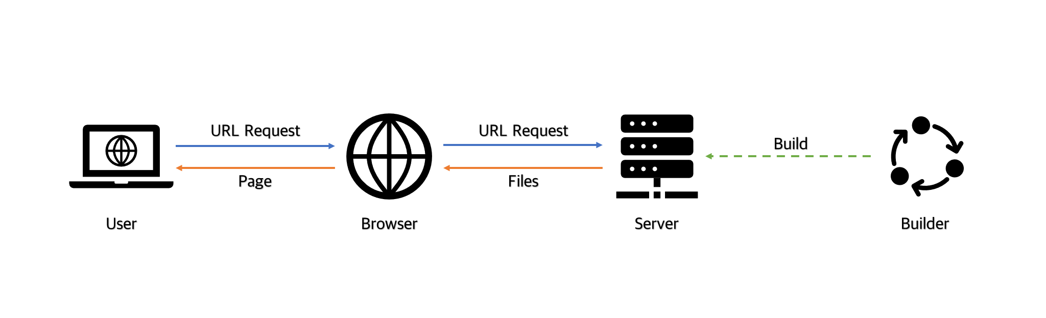 SSG(Static Site Generation)은 각 페이지의 HTML, CSS, JS를 빌드함으로써 URL별 파일을 생성합니다.