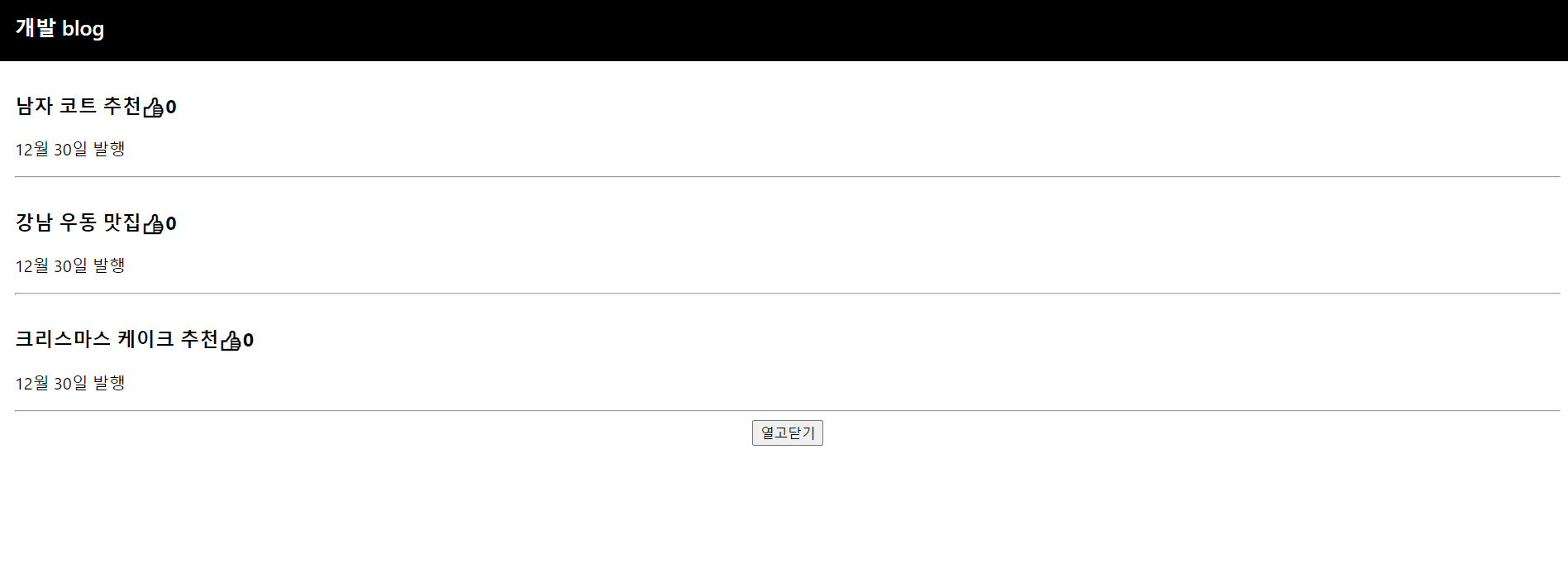저기 '남자 코트 추천'글 위에 새로운 글이 발행되게 기능을 구현해볼 것이다.